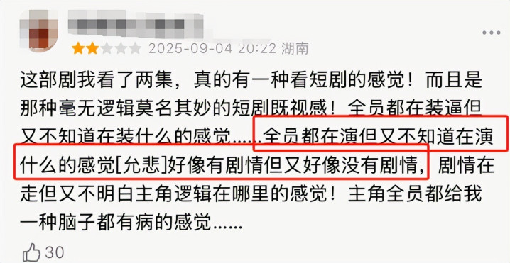 但网友看完前几集纷纷吐槽:“扑面而来的廉价短剧质感,这确定不是某音10分钟一集的微短剧?”