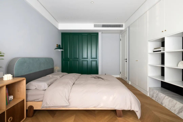 要是换成木饰面或者护墙板,估计能扛得住熊孩子的摧残。所以说,经常活动的区域,墙面材料一定要选耐磨的。