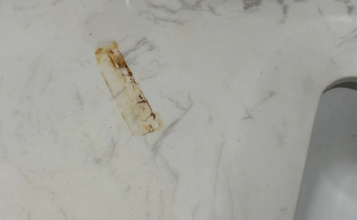 厨卫台面最怕金属物品,稍微沾点水就会留下锈迹。我家台面上那些发夹、修眉刀留下的印记,就是最好的证明。