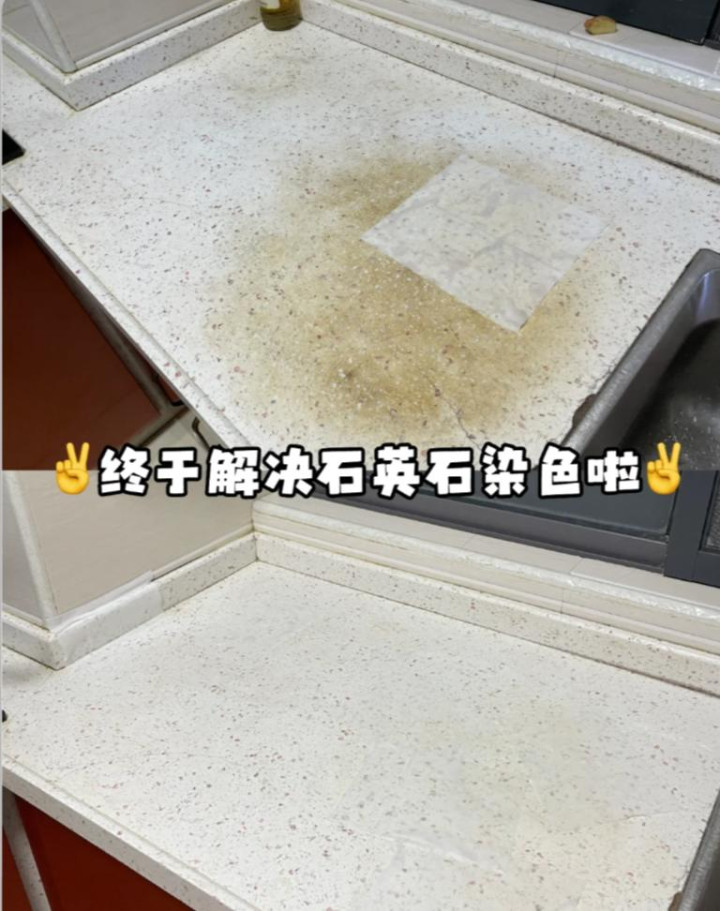 ps:当然#厨房台面去铁锈 也有小妙招,可以用洗脸巾+84消毒液,沾湿后放在台面上,一般5分钟后,铁锈就会自动消失了。