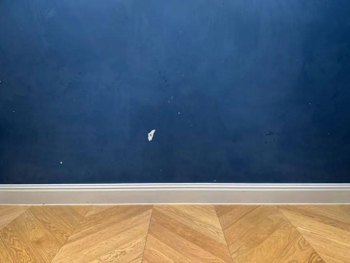 玄关和过道用了深蓝色乳胶漆,刚装好时确实很出片。可经不住两个娃天天折腾,现在墙上又是手印又是小坑。