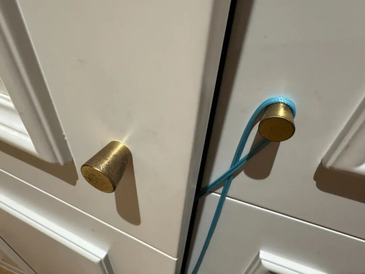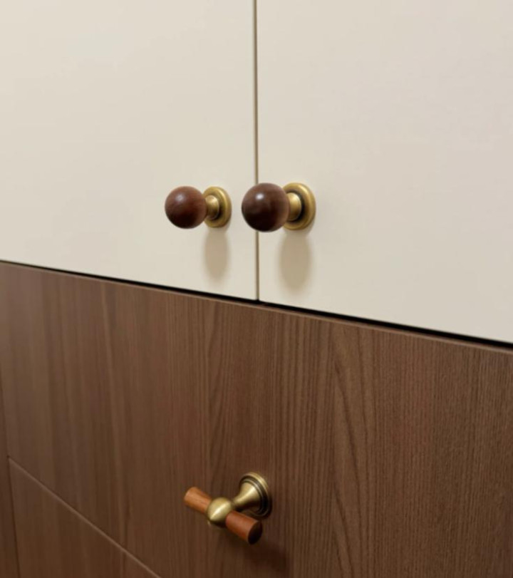 为了颜值选了黄铜小圆钮拉手,刚装上确实挺高级。可用起来才发现,这种小圆钮根本使不上劲,连我老婆都拉不动。